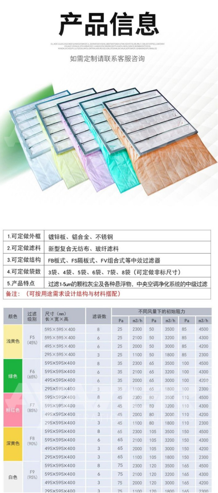 關鍵詞:布袋式過濾器、除塵多袋式過濾器、除塵過濾器、初效過濾器