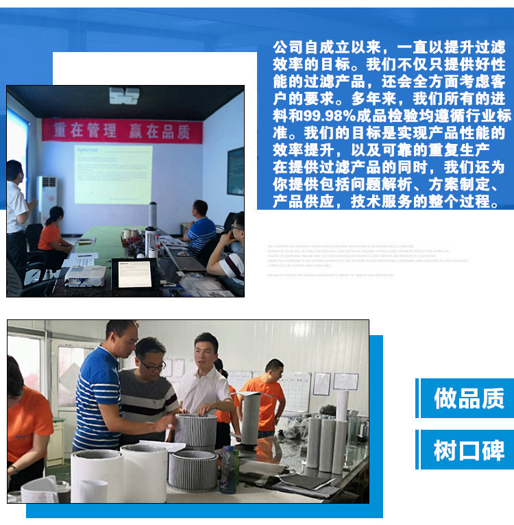新鄉(xiāng)市卅亞過濾有限公司自成立以來、一直從事過濾產(chǎn)品的研究、設(shè)計(jì)和制造,公司匯集了一大批***技術(shù)人才,***從事過濾凈化的研究和應(yīng)用,為產(chǎn)品的設(shè)計(jì)制造提供技術(shù)支持。經(jīng)過多年的發(fā)展,逐步轉(zhuǎn)變?yōu)楣I(yè)過濾器制造行業(yè)的一個(gè)重要品牌,在國內(nèi)及國外擁有者廣闊的市場(chǎng),自成立伊始,卅亞過濾不斷融合國內(nèi)外的技術(shù),引進(jìn)***的生產(chǎn)設(shè)備,配套***的質(zhì)檢設(shè)備,傾心為客戶提供技術(shù)服務(wù)、并提供油和空氣的過濾解決方案。我們提供的不僅僅是過濾產(chǎn)品,而且包括問題解析,方案制定,產(chǎn)品供應(yīng),技術(shù)服務(wù)的整個(gè)過程。