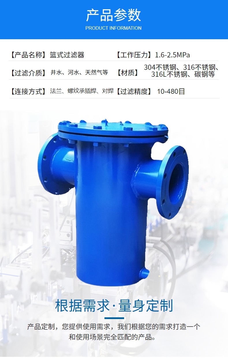 關(guān)鍵詞:籃式過濾器,不銹鋼籃式過濾器,污水處理設(shè)備,工業(yè)過濾器,大流量過濾器