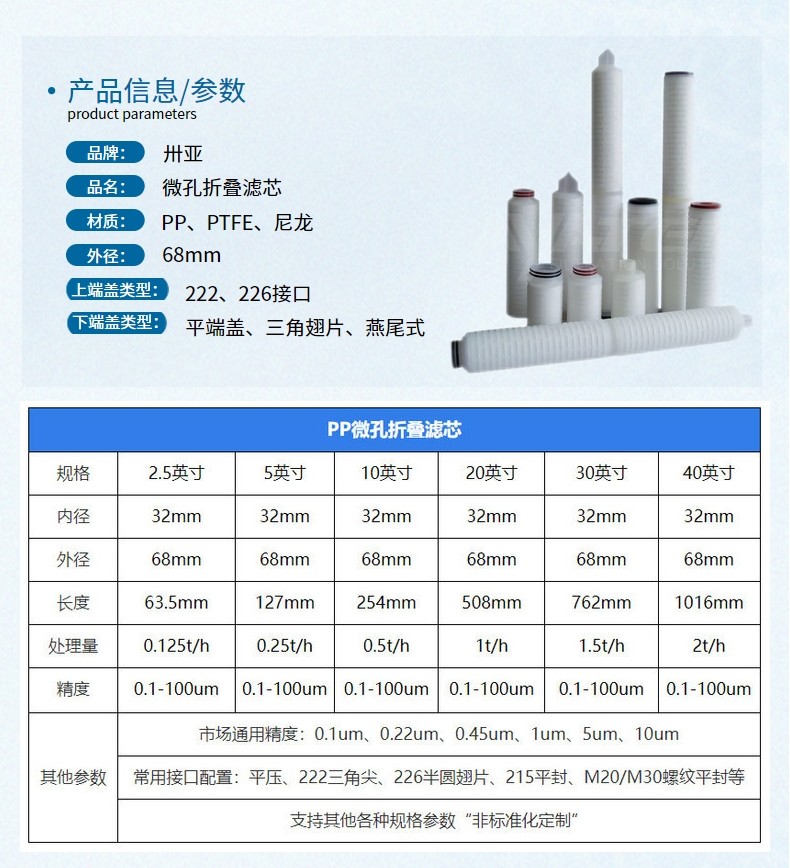 卅亞過(guò)濾20寸微孔折疊濾芯精密聚丙烯折疊濾芯 藥液酒廠折疊式