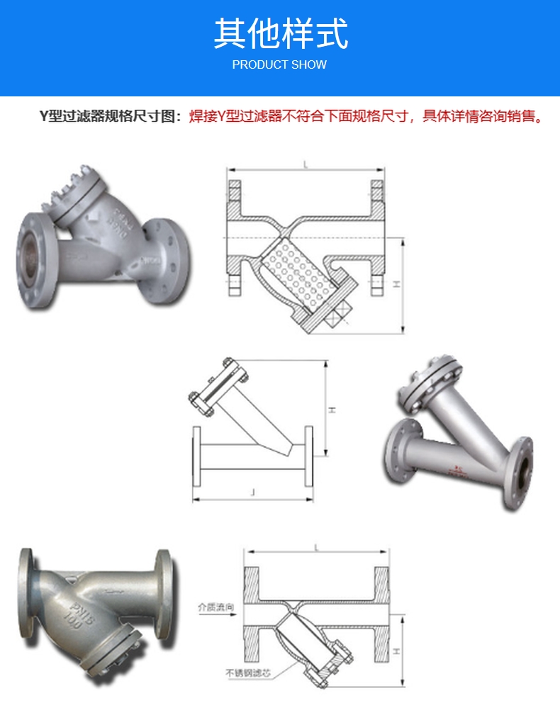 GL41W-16P 316L不銹鋼Y型法蘭過濾器