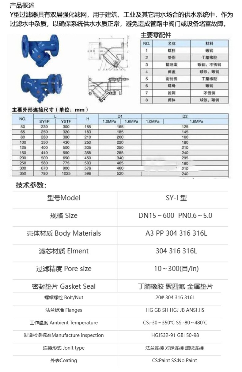 Y型過濾器法蘭球墨鑄鐵304不銹鋼
